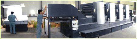 海德堡印刷机速霸系列CP2000-CD102对开四色机,SM74四开四色机,SM52六开四色机,SO102对开单色机,SO74四开双色机,日本小森印刷机L-440对开四色机,台湾大祥打孔机,丹麦显影机;海德堡斯塔尔、日本正荣折页机,数控切纸机,瑞士马天尼胶装机及其它辅助设备。